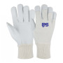 Product ID: PFS 1151GSNK | Sizing: 7, 8, 9, 10, 11, 12 Palms made with goatskin leather, provide excellent tensile strength and abrasion resistance. The high lanolin content in goatskin makes it one of the softest leathers available. leather wraps around fingertips to eliminate seam placement in traditional wear areas for increased lifespan. Natural Color Interlock cotton fabric on the back provides breathability, dexterity, and comfort. Gun Cut Pattern and Straight thumb design is best for gripping and any closed fist work. Knitted cuffs to maintain a secure fit around the wrists and to keep out dirt and debris.