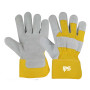 Cow Split Glove Yellow Cotton Back On the Hand Palm Lining Wing thumb Shirred Elastic Rubberized Cuff