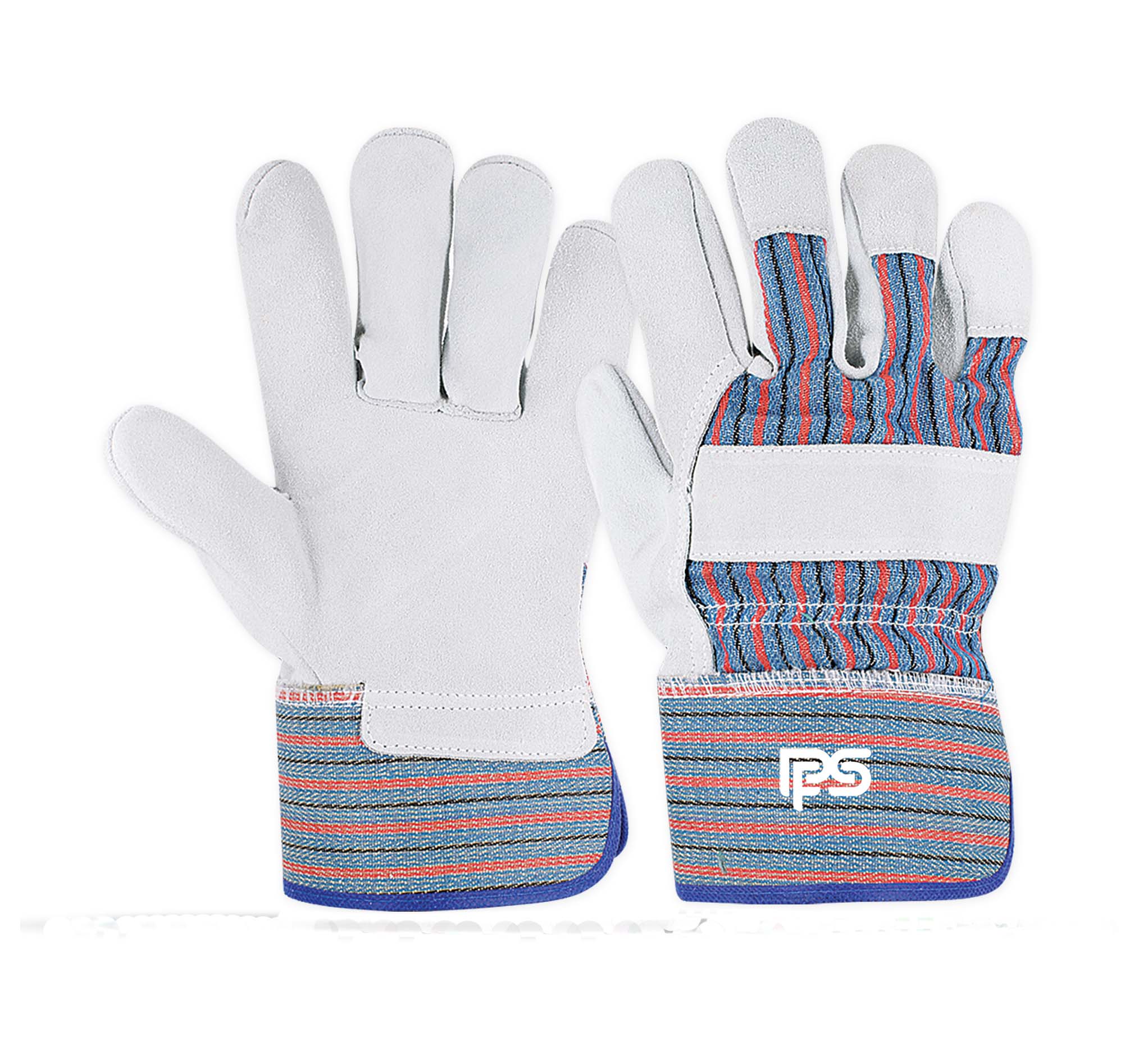 | Material: | Cow Split Leather, Color Striped cotton-blend Canvas, 2.5" Rubberized Cuff, Cotton Fleece, Polyester |