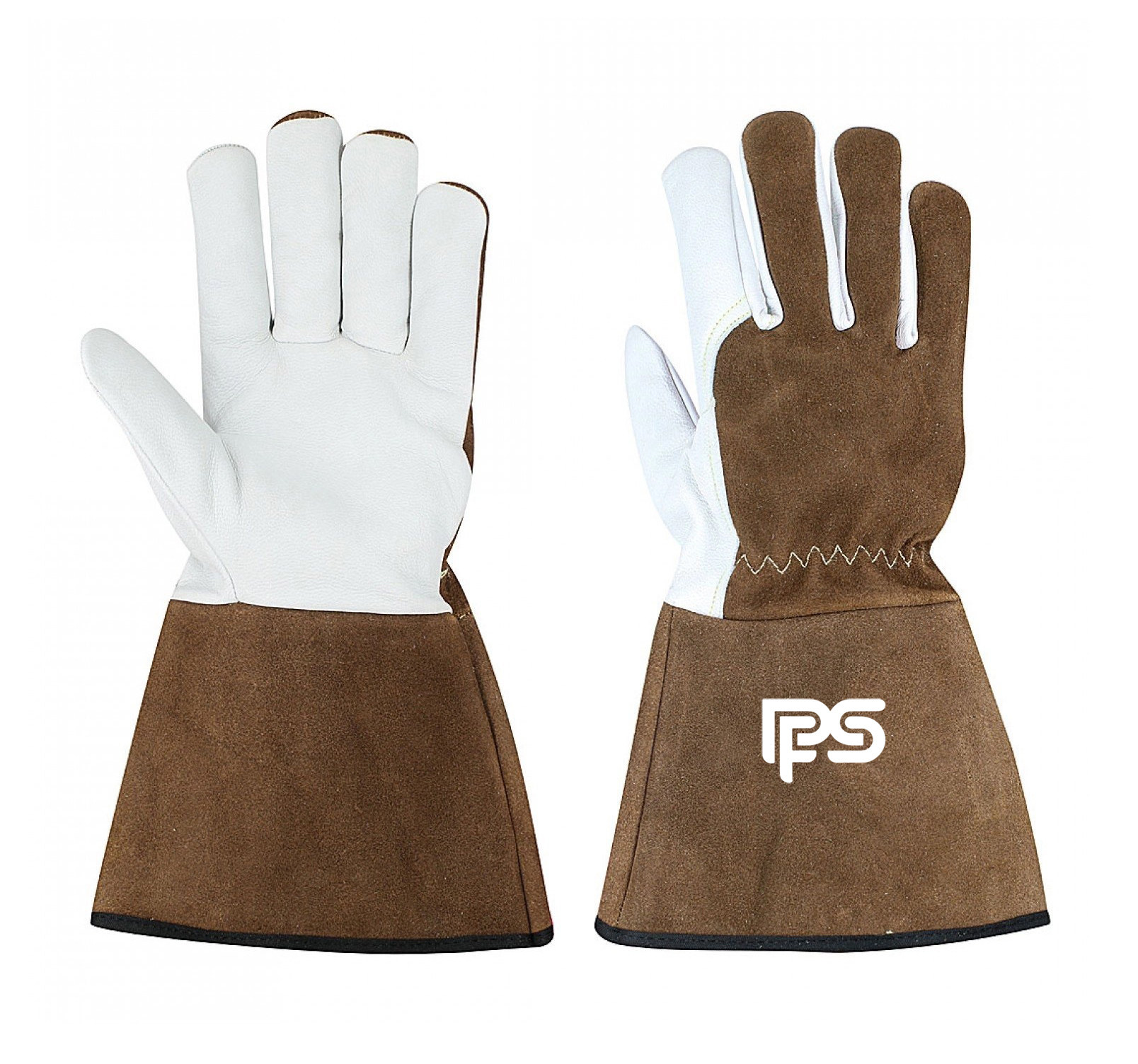 Product ID: PFS 4009GCBS | Sizing: 8, 9, 10, 11, 12, With extremely soft goatskin, the gloves offer a precise fit that won’t interfere with touch sensitivity, more convenient to operate and grasp, characteristics include the strongest tensile strength and superior heat resistance, the best combination of flexibility and comfort, provide high abrasion & puncture resistance. Durable shoulder-split cowhide leather back adds extra protection and greater durability without compromising breathability. All glove seams are stitched with extremely high strength DuPont™ Kevlar® thread to prevent seam failure and increase durability. Seamless Forefinger offers superior comfortability and great abrasion protection. Wing thumb pattern designed to enhance fit and better range of motion in open-handed work The wrist of this welding glove has elasticity, which can better adapt to everyone’s wrists of different sizes and can prevent debris and electric sparks from entering the glove. The Brown cow split leather cuff provides excellent abrasion resistance and also protections the wrist from heat, sparks, flames, and sharp objects. Cotton Hem color-coded size and enhances comfort by reducing chaffing at the wrist.