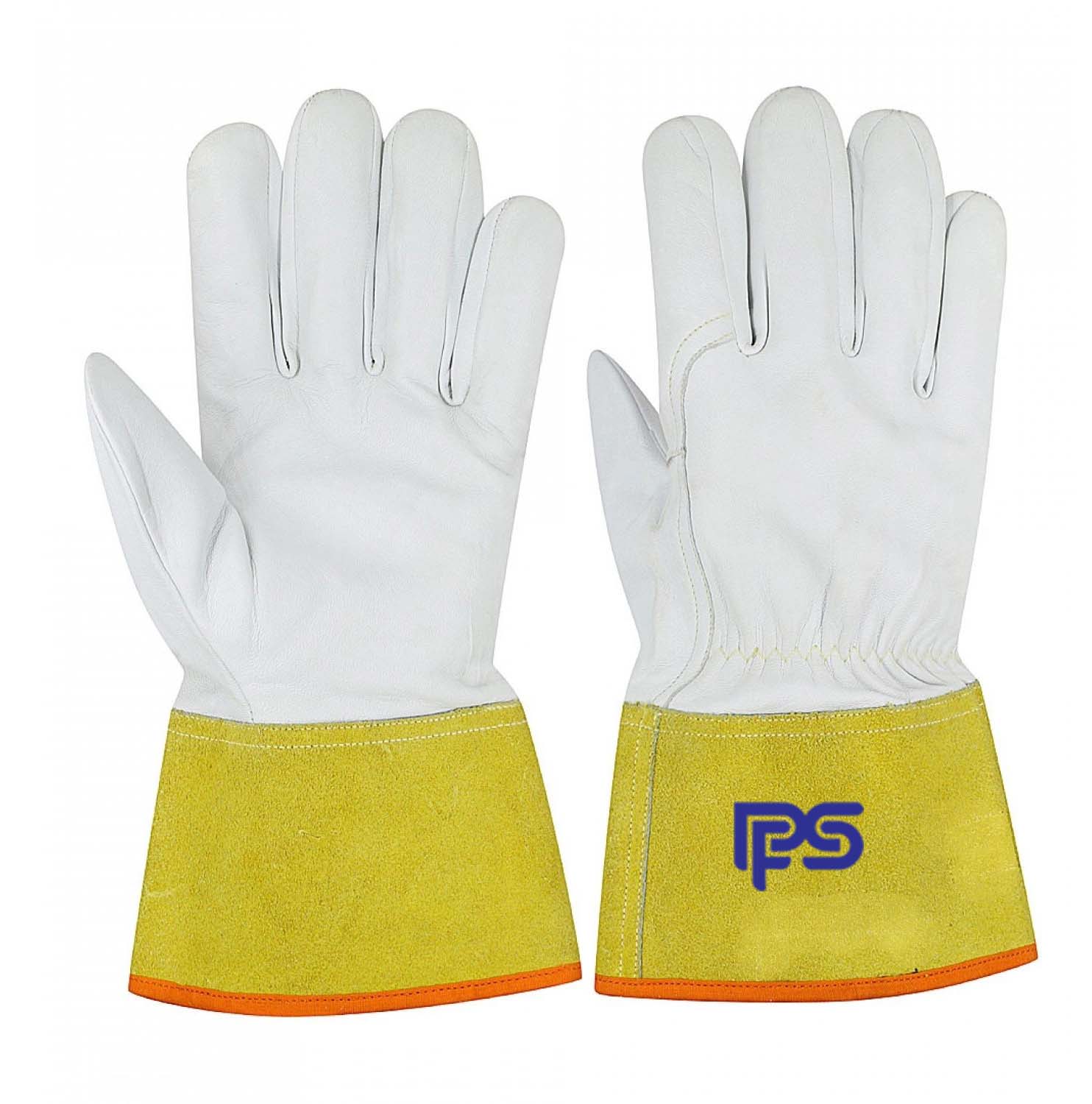 Product ID: PFS 4011GYSH | Sizing: 8, 9, 10, 11, 12, With extremely soft goatskin, the gloves offer a precise fit that won’t interfere with touch sensitivity, more convenient to operate and grasp, characteristics include the strongest tensile strength and superior heat resistance, the best combination of flexibility and comfort, provide high abrasion & puncture resistance. All glove seams are stitched with extremely high strength DuPont™ Kevlar® thread to prevent seam failure and increase durability. Seamless Forefinger offers superior comfortability and great abrasion protection. Wing thumb pattern designed to enhance fit and better range of motion in open-handed work. Leather fourchette inserts (between fingers) for better flexibility, and comfort. The wrist of this welding glove has elasticity, which can better adapt to everyone’s wrists of different sizes and can prevent debris and electric sparks from entering the glove. The 3-inch Yellow cow split leather cuff provides excellent abrasion resistance and also protections the wrist from heat, sparks, flames, and sharp objects. Cotton Hem color-coded size and enhances comfort by reducing chaffing at the wrist.