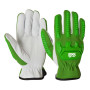 Premium Quality Goatskin Glove, Shirred Elastic Slip-On Cuff, Spandex 4 Way Stretch with Hi-Viz Green TPR Back, Keystone Thumb